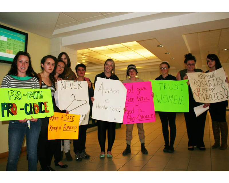 A small pro-choice demonstration formed around Dr. Martha Shuping's visit Sept. 25. Photo by Russell Cochrane.
